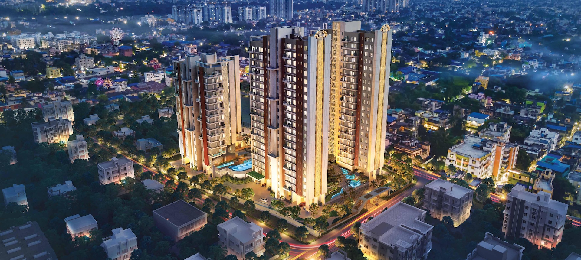 Nidhara by SKDJ Group is a thoughtfully designed luxury residential project located in the prestigious neighborhood of New Alipore, Kolkata. The development comprises three elegant towers — two with 21 storeys and one with 15 — offering only 115 exclusive apartments, ensuring low density and privacy.