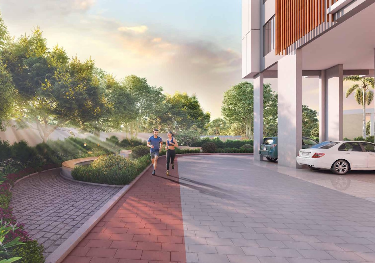The project is enveloped in 23,338 sq.ft. of lush 3-tier landscaped greenery, creating a serene and peaceful living environment. A 14,812 sq.ft. luxury clubhouse offers world-class amenities such as indoor and outdoor aqua spas, a swimming pool, gymnasium, yoga deck, play areas, and much more, enhancing the holistic lifestyle experience.